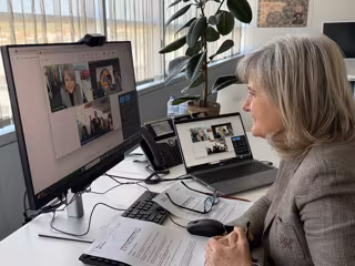 La consejera de Cultura, Turismo, Jóvenes y Deportes en funciones, Victoria Bazaga, ha comunicado por videollamada la noticia a los estudiantes ganadores del concurso - JUNTA DE EXTREMADURA