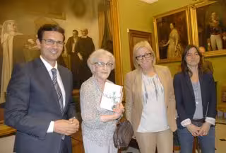 La autora de 'Léxico de afinidades', de 93 años, ha firmado en el libro de honor de la ciudad, en el que ha escrito: "Para una ciudad espléndida, no hay más espléndida palabra que corresponda que gracias. Muchas gracias porque nos ofrecen a sus dichosos visitantes. Gracias, gracias pues".