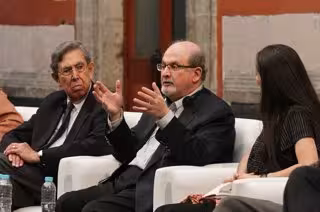 Acompañado por Carmen Boullosa, Vicente Rojo, Eduardo Vázquez Martín (secretario de Cultura de la Ciudad de México), el ex jefe del gobierno de la ciudad Cuauhtémoc Cárdenas y el director de la Casa Citlaltépetl, Philippe Ollé, Rushdie conversó además sobre el hábito de la lectura, los autores que son perseguidos y en cuyas presentaciones se insiste más en esa circunstancia que en sus textos.