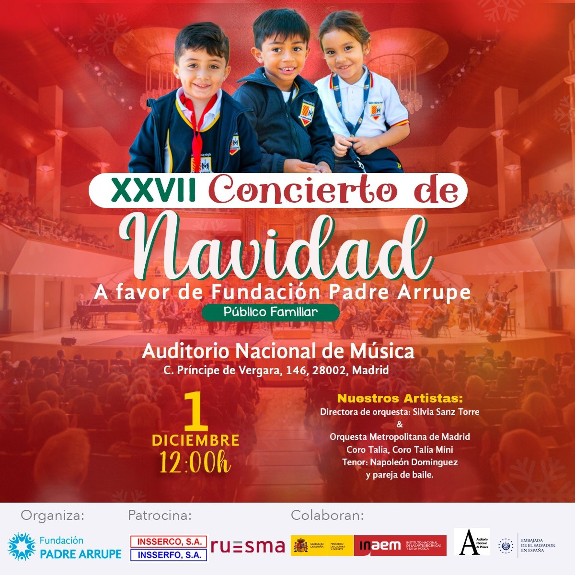 La Fundación Padre Arrupe celebrará este domingo, 1 de diciembre, a las 12:00 horas en el Auditorio Nacional de Música, en Madrid, su tradicional concierto solidario de Navidad, con el que se recaudarán fondos para garantizar una educación de calidad a niños y niñas en riesgo exclusión social en El Salvador.