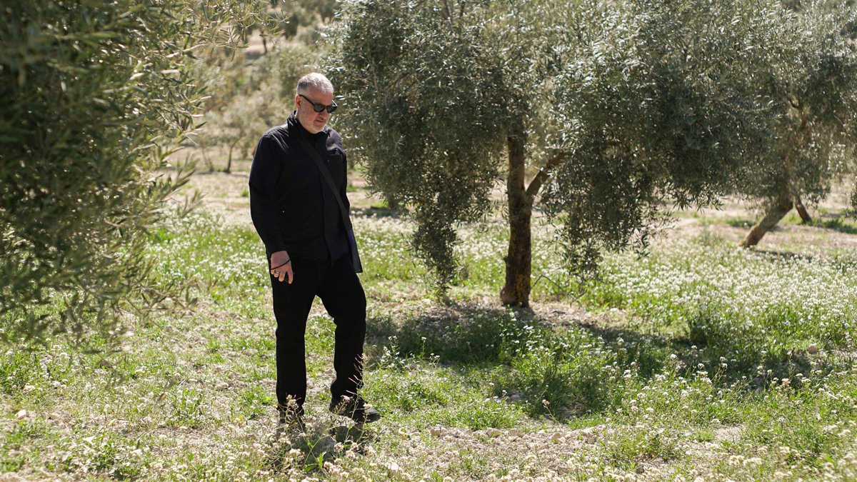 "Estaba explorando lugares en Granada para hacer la instalación, y mientras conducía vi unas montañas hermosas llenas de olivos, y todos estaban alineados como una banda de música. Era como una banda o una fila de personas esperando entrar a un evento deportivo, o incluso como una pintura de Piet Mondrian. Era tan surrealista que los olivos me recordaban a personas", relata.