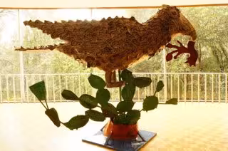 Esta muestra está integrada por 10 piezas realizadas bajo la técnica de la cartonería y son resultado de una serie de talleres realizados por 'Alas y Raíces' en mayo de 2015 en el Museo del Caracol.