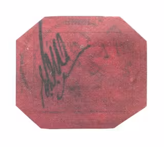 El sello fue descubierto por primera vez por un joven coleccionista de 12 años en 1873, 17 años después de que un maestro de postas en la Guayana Británica pidiera la impresión de sellos de emergencia, entre los que se encontraba éste. El joven de 12 años, al no encontrar una referencia del sello en su catálogo, lo vendió por seis chelines.