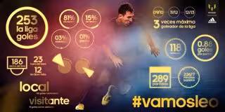 En el infográfico, destacan las efemérides de este récord con la etiqueta '#vamosleo'. De los 253 goles, el 81% han sido con su pie izquierdo, el 15% con el pie derecho, el 3% con la cabeza y el 1% restante con el pecho. De ellos, 186 fueron desde dentro del área, 23 fuera de ella y 12 de falta directa. En el Camp Nou ha marcado 142 goles, y 111 los logró por los distintos campos de la Liga.