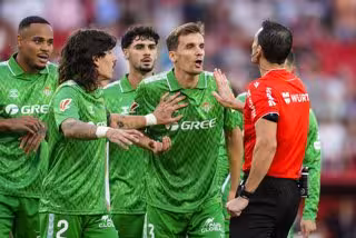 Diego Llorente of Real Betis protests during the Spanish league, LaLiga EA Sports, football match played between Sevilla FC and Real Betis at Ramon Sanchez-Pizjuan stadium on October 6, 2024, in Sevilla, Spain. - Joaquin Corchero / AFP7 / Europa Press