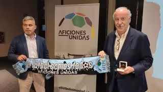 "Hemos querido agradecer la importancia que el entrenador da a la afición del fútbol, "sin la que no podría existir este deporte", según Vicente del Bosque. El exentrenador salmantino destacó el valor que tiene Aficiones Unidas como colectivo, "al estar unidos más allá de vuestros equipos, con la pasión por el fútbol por encima de todo".