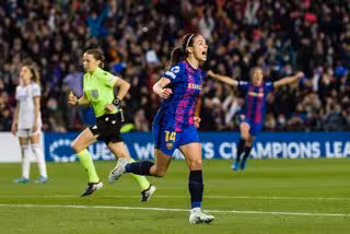 Aitana Bonmati of FC Barcelona celebrates a goal during the UEFA Women's Champions League Quarter Finals match between FC Barcelona and Real Madrid CF at Camp Nou on March 30, 2022 in Barcelona, Spain. - Javier Borrego / AFP7 / Europa Press