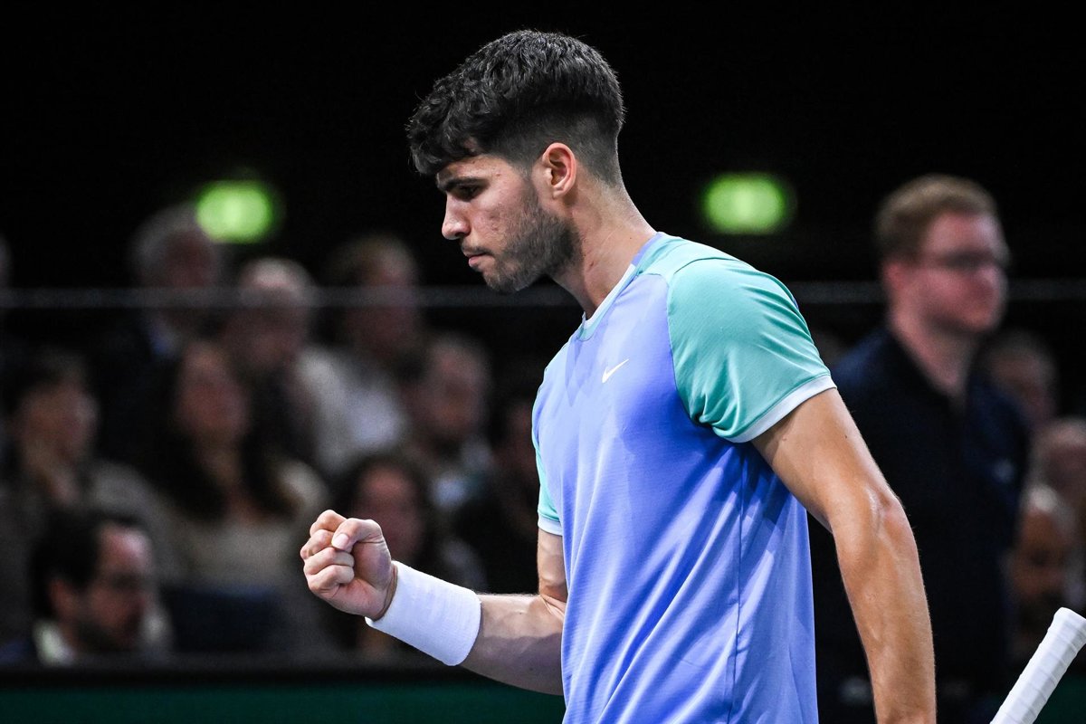 Archivo - 31 October 2024, France, Paris: Spanish tennis player Carlos Alcaraz celebrates a point against French Ugo Humbert during their men's singles round of 16 match of the Rolex Paris Masters tennis tournament at Accor Arena. Photo: Matthieu Mirville - Matthieu Mirville/ZUMA Press Wir / DPA - Archivo