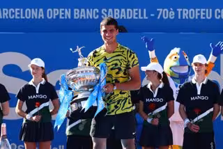 Carlos Alcaraz of Spain poses for photo with the champion trophy after winning against Stefanos Tsitsipas of Greece during the Final match of the Barcelona Open Banc Sabadell 2023 (Conde Godo) at Real Club De Tenis Barcelona on April 23, 2023 in Barcelo - Javier Borrego / Afp7 / Europa Press
