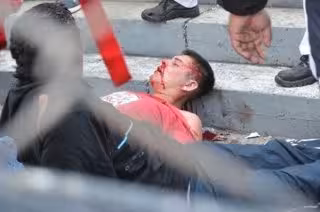 La lucha de poder entre los violentos dejó un saldo de cuatro "barras bravas" heridos, uno de ellos grave por las puñaladas que recibió, y cinco policías heridos.