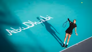 Garbiñe Muguruza sacando en Abu Dabi