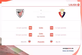 En el panorama ofensivo, el equipo vizcaíno mejora los registros del equipo navarro en goles por partido con 1,6 goles por encuentro del primero frente a 1,2 del segundo, según las estadísticas de Driblab consultadas por Europa Press. En cuanto a la calidad de las ocasiones de gol generadas, los de Valverde también superan a los de Vicente Moreno con 1,2 goles esperados frente a 0,9.