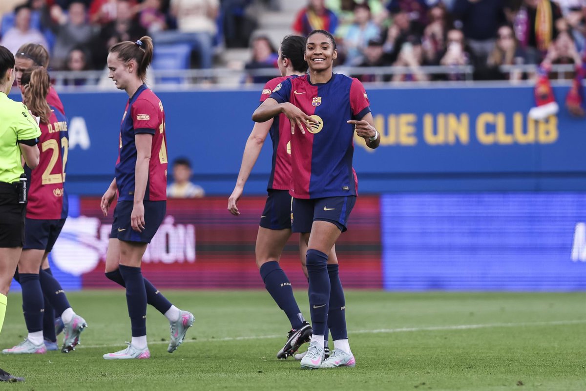 Salma Paralluelo of FC Barcelona celebrates a goal during the Spanish Women league, Liga F, football match played between FC Barcelona and Atletico de Madrid at Johan Cruyff Stadium on April 13, 2025 in Sant Joan Despi, Spain. - Javier Borrego / AFP7 / Europa Press