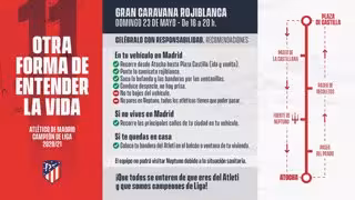 Así, invita a los aficionados a vestir la camiseta del club, sacar la bufanda y banderas por la ventanillas del vehículo y conducir despacio. Asimismo, recomienda no abandonar el vehículo y no parar en Neptuno, tradicional punto de celebración rojiblanca, porque "todos los atléticos tienen que poder pasar".