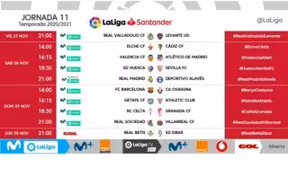 Horarios de la Jornada 11 de LaLiga Santander de la temporada 2020/21 - LALIGA