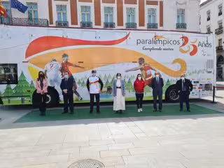 Ayuso recibe al autobús conmemorativo del 25 aniversario del Comité Paralímpico Español