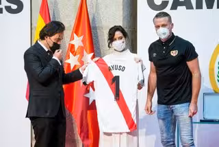 "Volvéis al lugar que os corresponde", indicó Díaz Ayuso, que ha recibido una camiseta con su apellido y el número 1, de manos del presidente del Rayo, Raúl Martín Presa, y del capitán del equipo, Alberto García, a quienes ha correspondido con una placa conmemorativa de su regreso a la máxima categoría del fútbol español.