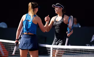 Archivo - Garbine Muguruza & Paula Badosa of Spain in action during the semi-final at the 2021 Akron WTA Finals Guadalajara WTA tennis tournament