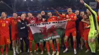 El jugador del Real Madrid Gareth Bale ha celebrado la clasificación de la selección galesa para la Eurocopa de 2020 portando una bandera que dice 'Gales, golf, Madrid, en ese orden', después de la victoria ante Hungría que supuso el billete para la cita continental.