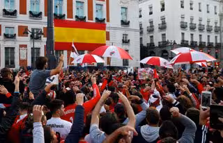 Los hinchas de River Plate se han congregado este sábado a las 17.00 horas en la madrileña Puerta del Sol para realizar el 'banderazo' en apoyo al equipo argentino, de cara a la final de la Copa de Libertadores que se disputará este mismo domingo en el Santiago Bernabéu.