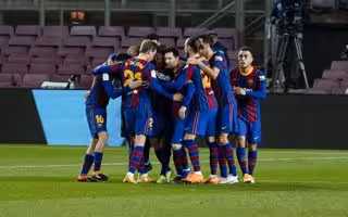 Celebración de los jugadores del FC Barcelona durante la victoria en el Camp Nou contra la Real Sociedad (2-1)