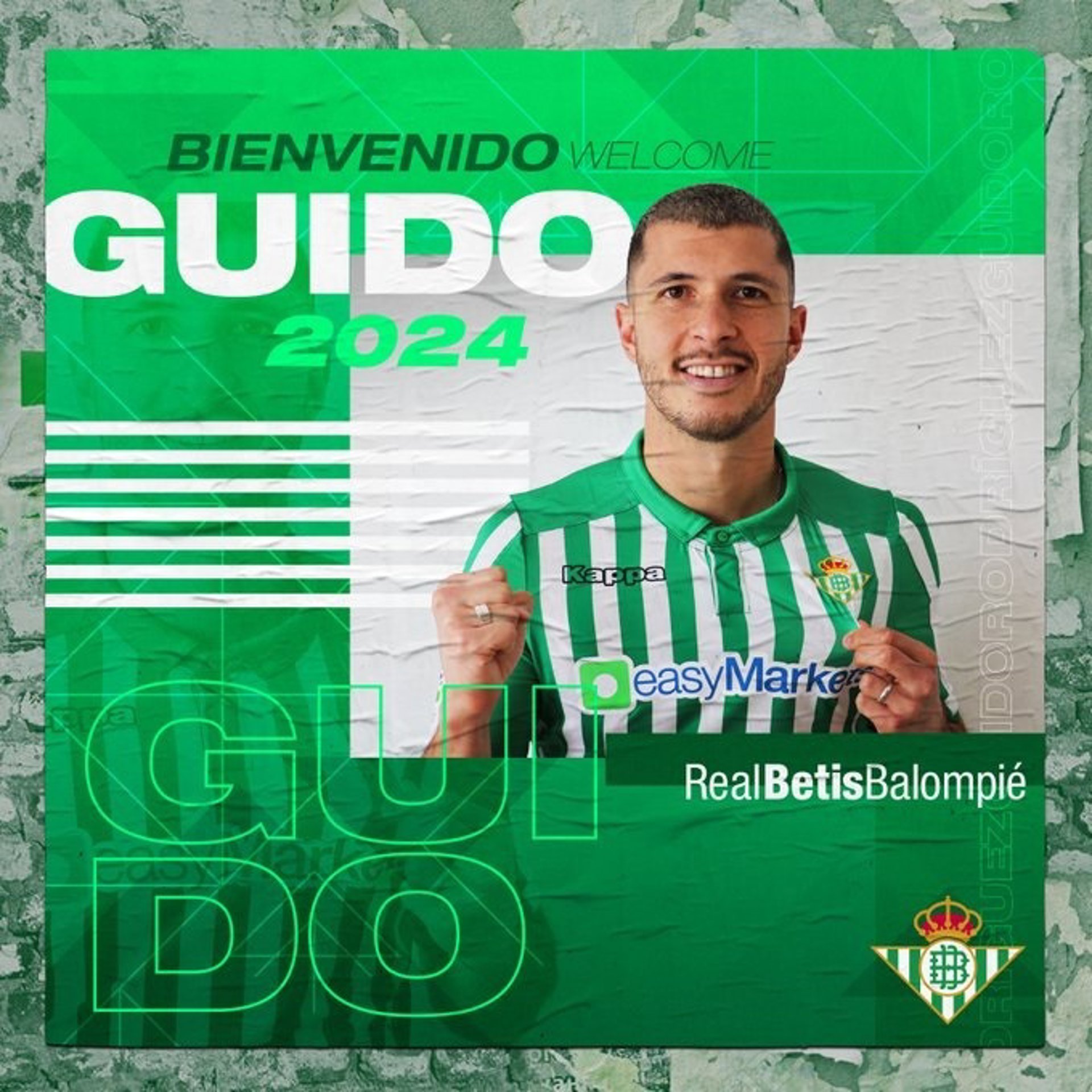 El Real Betis Balompié ha anunciado este martes la contratación del centrocampista Guido Rodríguez tras haber alcanzado un acuerdo con su club de procedencia, el América, que se prolongará hasta el 30 de junio de 2024, informó la entidad heliopolitana.