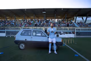 El atacante gallego, durante cuatro años futbolista de las categorías inferiores celestes, fue ovacionado por cientos de aficionados que quisieron acercarse al antiguo campo de entrenamiento del conjunto vigués, al que Borja Iglesias llegó al volante de un Seat Panda -en homenaje al apodo del jugador- celeste.
