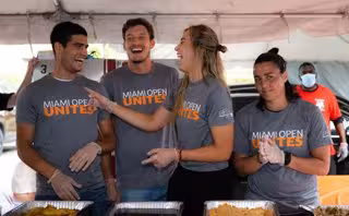 Archivo - Paula Badosa of Spain, Ons Jabeur of Tunisia & Carlos Alcaraz of Spain distributes food at the Miami Mission as part of Miami Open Unites ahead of the 2022 Miami Open WTA 1000 tennis tournament
