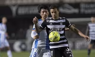 Rubén Castro defiende la pelota ante Gaku Shibasaki en el Cartagena-Leganés - LALIGA