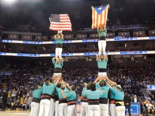 Los Castellers de Vilafranca, que esta semana están haciendo una serie de exhibiciones en California, han mostrado una 'estelada' -bandera independentista de Catalunya- en el partido entre Golden State Warriors y los Minnesota Timberwolves en el Chase Center de San Francisco.