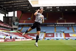 09 May 2021, United Kingdom, Birmingham: Manchester United's Edinson Cavani celebrates scoring his side's third goal during the English Premier League soccer match between Aston Villa and Manchester United at Villa Park. Photo: Shaun Botterill/PA Wire/d