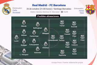 Infografía con posibles alineaciones para el próximo partido Real Madrid - FC Barcelona que tendrá lugar el próximo 26 de octubre en el estadio Santiago Bernabeu.