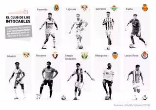 Con casi un cuarto de Liga ya disputado, solo nueve jugadores de campo se han librado de pasar por el banquillo o la grada, disputando los más de 810 minutos que todos los equipos han jugado en estas nueve jornadas ligueras. Todos ellos tienen una característica común, y es que se trata de jugadores que ocupan demarcaciones defensivas, siendo siete de ellos centrales --Lejeune, Mumin, Llorente, Raíllo, Boyomo, Sergio González y Mosquera--, mientras que los dos restantes son laterales --Lucas Rosa y Femenía--.