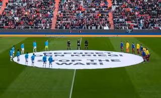 En Wolfsburgo, el círculo central se convirtió en un signo de la paz, mientras que el equipo local llevaba camisetas con el mismo signo en lugar del logotipo de su patrocinador Volkswagen. Los eslóganes de las pizarras publicitarias pidieron la paz, al igual que en el Estadio Olímpico de Berlín, donde eran amarillas y azules con la palabra paz en varios idiomas. Los aficionados también se sumaron a la muestra de solidaridad con pancartas con lemas pacifistas.