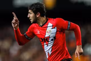 Archivo - Santi Comesana of Rayo Vallecano celebrates a goal during the spanish league, La Liga Santander, football match played between Valencia CF and Real Sociedad at Mestalla stadium on April 3, 2023, in Valencia, Spain.