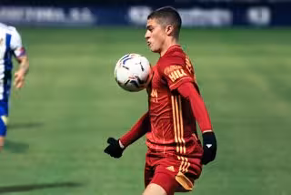Luca Zanimacchia of Real Zaragoza controls the ball during the spanish league, Liga Smartbank, football match played between SD Ponferradina and Real Zaragoza at El Toralin stadium on November 22, 2020, in Ponferrada, Leon, Spain. - Irina R. Hipolito/AFP7 / Europa Press