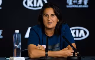 Archivo - Conchita Martinez, coach of Garbine Muguruza, talks to the media at the 2020 Australian Open Grand Slam tennis tournament against Kiki Bertens of Netherlands