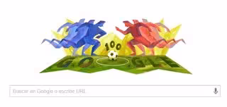 En la imagen del 'doodle' se puede observar a dos jugadores en el centro de un campo de juego disputándose un balón con el número 100, los años que se cumplen del emblemático certamen, el más antiguo del mundo en cuanto a selecciones se refiere.