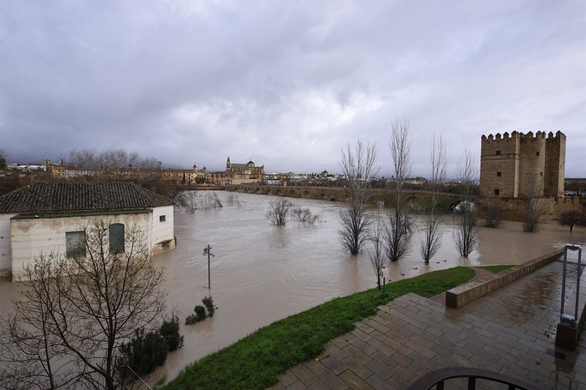 Ribera del Guadalquivir a su paso por Córdoba capital, inundada al haber superado el río los cinco metros de crecida de caudal. A 6 de febrero de 2026 en Córdoba (Andalucía, España). Según los datos del Sistema Automático de Información Hidrológica (SAIH - Madero Cubero - Europa Press