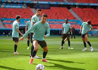 14 June 2021, Hungary, Budapest: Portugal's Cristiano Ronaldo takes part in a training session for the team at the Puskas Arena ahead of Tuesday's UEFAEURO2020 Group F soccer match against Hungary. Photo: Robert Michael/dpa-Zentralbild/dpa