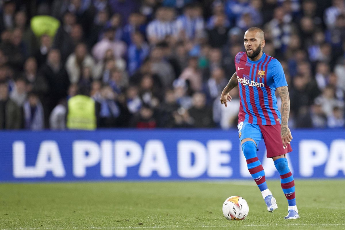 Dani Alves of FC Barcelona in action during the Spanish league match of La Liga between, Real Sociedad and FC Barcelona at Reale Arena on April 21, 2022, in San Sebastian, Spain. - Ricardo Larreina / AFP7 / Europa Press