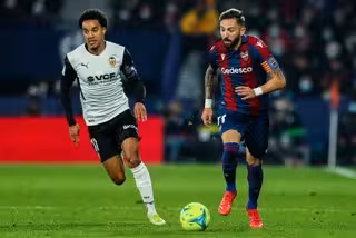 Archivo - Jose Luis Morales of Levante UD and Helder Costa of Valencia in action during the Santander League match between Levante UD and Valencia CF at the Ciutat de Valencia Stadium on December 20, 2021, in Valencia, Spain. - Ivan Terron / AFP7 / Europa Press - Archivo