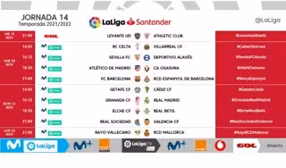 Horarios de la jornada 14 en la Liga Santander 2021-22 - LALIGA
