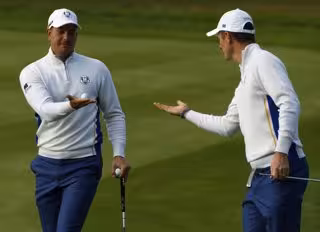 Los americanos comenzaron dominando y llegaron a ir mandando dos arriba al paso del 6 cuando apareció el vendaval de 'birdies' del inglés y el sueco, que encadenaron diez consecutivos para darle la vuelta al partido y llevarse el triunfo por 3 y 2 pese a la enorme resistencia de los estadounidenses.