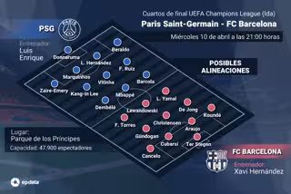 En el siguiente enlace podrás consultar el cuadro, las posibles alineaciones y las estadísticas previas de los cuartos de final de la UEFA Champions League 2023-24: