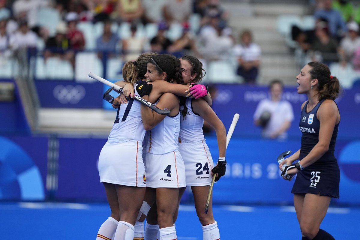 La selección española femenina de hockey hierba celebra el gol ante Argentina en Paris 2024
