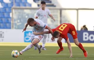 De la Fuente retocó ante los belgas su once respecto al debut ante Italia e incluso modificó algo su dibujo, en parte quizá por la baja de Fabián Ruiz. El riojano quitó a un mediocentro puro como Zubeldia y formó un centro del campo con Ceballos, de nuevo a buen nivel y el más lúcido, y Merino, introduciendo a Dani Olmo, autor del 1-0, como mediapunta por detrás de Mayoral.
