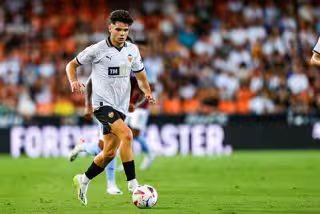 El jugador valenciano debutó con el primer equipo valencianista en agosto de 2022 ante el Atlético de Madrid y hasta ahora ha disputado 11 partidos de LaLiga, 3 de la Copa del Rey y uno de la Supercopa de España.