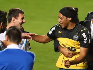 Mientras los guardias intentaban sacar a los aficionados del campo, un joven moreno, de pelo ensortijado recogido con una diadema, tez morena, ojos saltones y gran sonrisa apareció corriendo a gran velocidad para saludar, finalmente, a Lionel Messi, quien se sorprendió con el gran parecido de este hombre con Ronaldinho.