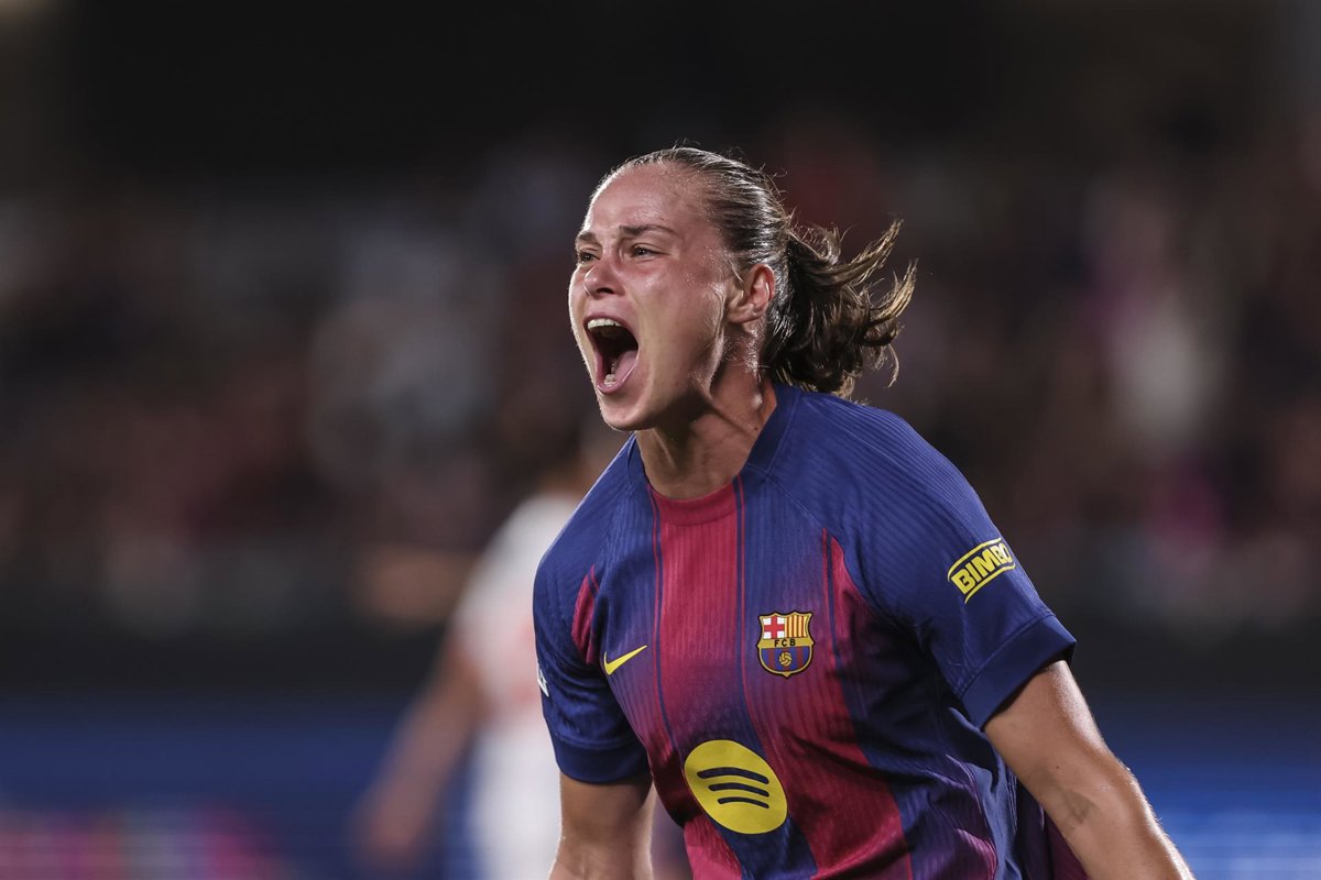 Ewa Barbara Pajor of FC Barcelona celebrates a goal during the UEFA Women’s Champions League 2025/26 League Phase MD1, football match played between FC Barcelona and FC Bayern Munchen at Johan Cruyff Stadium on October 07, 2025 in Sant Joan Despi, Spain. - Javier Borrego / AFP7 / Europa Press